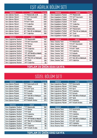 TOPLAM 36 ÜRÜN 8368 SAYFA Ders Uygulama Testleri TYT Matematik SAYFA SAYISI ÜRÜN BİLGİSİ YAYIN ADI SAYFA SAYISI